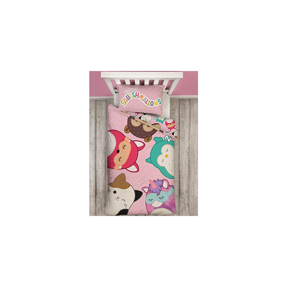 Squishmallows Official Single Bed Coverless Duvet Bedding | Reversible Coverless Quilt & Pillowcase | Washable Duvet | Perfect For Travelling & Sleepovers | Single 10.5 tog