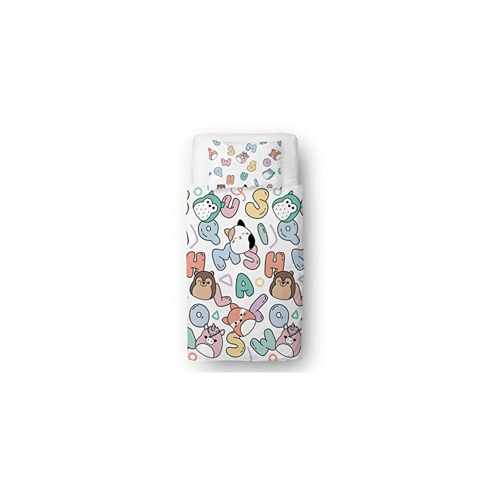 Squishmallows Character World Official Polyester Single Duvet Cover Set, Bright Design | Reversible 2 Sided Squish Squad Bedding Cover Official Merchandise Including Matching Pillow Case, Multicolor