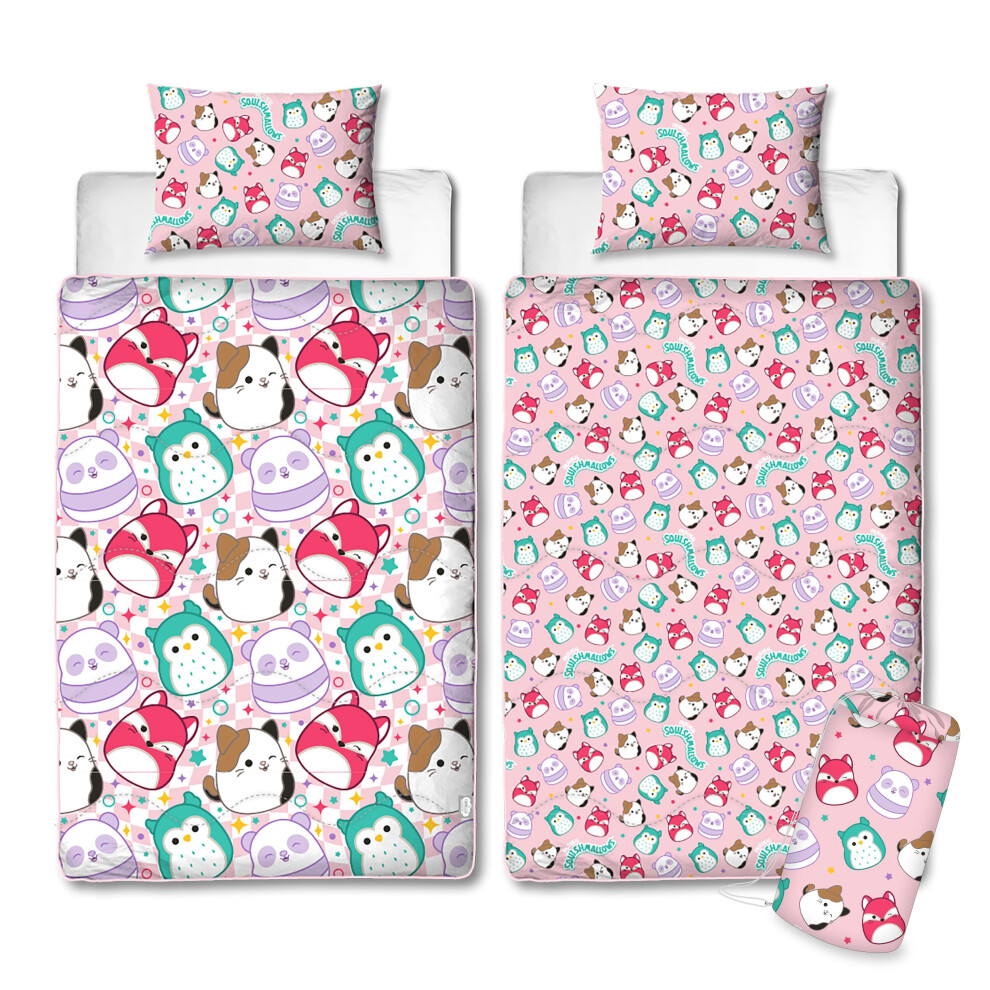 Official Squishmallows Single Bed Coverless Duvet Bedding | Reversible Coverless Quilt, Pillow & Pillowcase | Washable Duvet | Perfect For Travelling