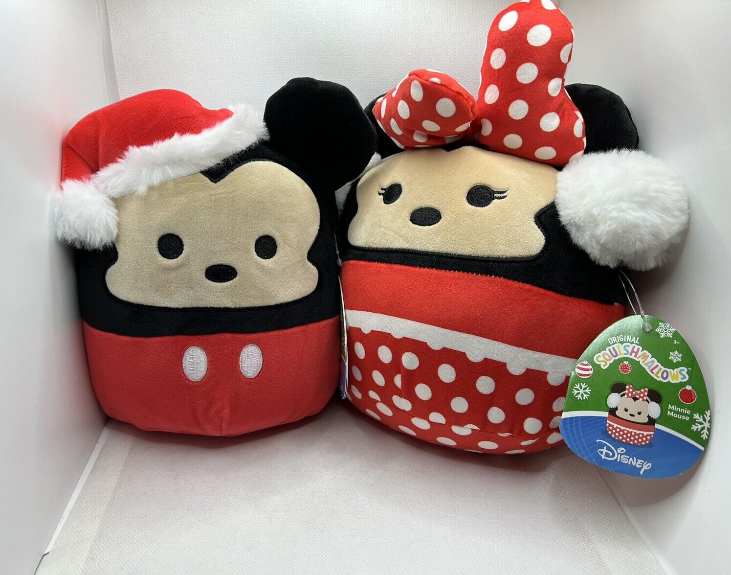 Christmas Mickey Minnie Mouse Squishmallow Disney 8" Plush Soft Toy NEW UK Pair