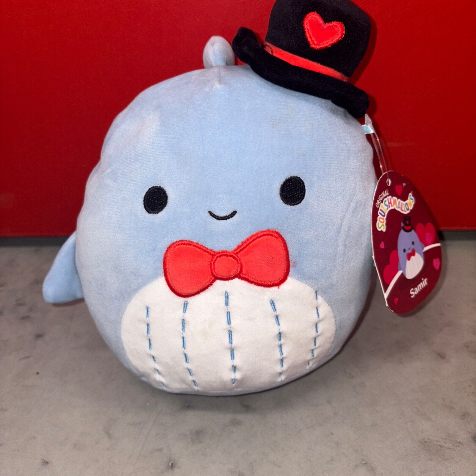 Samir the Blue Whale Squishmallow 7.5" Valentines Plush Soft Blue Heart NEW UK