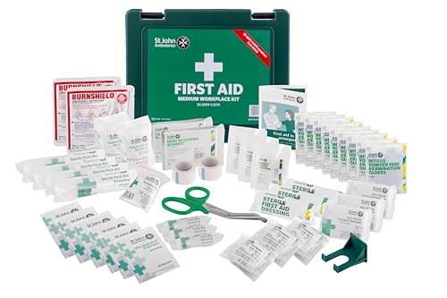 St John Ambulance Medium Workplace First Aid Kit | BS 8599-1:2019 Compliant | for 25 – 50 People | with Wall Bracket | Eco-Friendly Packaging