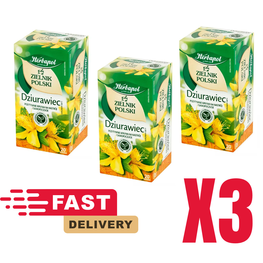 3x Herbapol Polish Tea Polska Herbata Dziurawiec St. John's Wort 60 Tea Bags