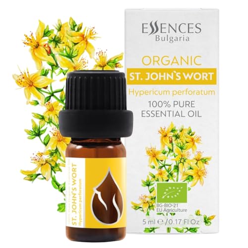 Essences Bulgaria Organic St. John's Wort Essential Oil 5ml | Hypericum perforatum | 100% Pure and Natural | Undiluted | Therapeutic Grade | Family Owned Farm | Steam-Distilled | Non-GMO | Vegan