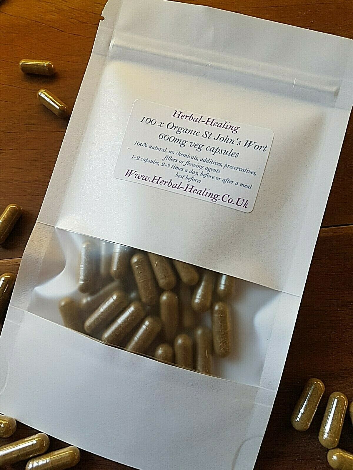 200x Organic St John's Wort Powder Capsules,600mg,Hypericum perforatum, Vegan