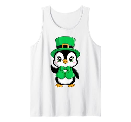 Cute St Patricks Day Penguin Leprechaun Outfit Tank Top