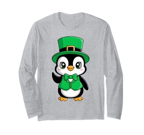 Cute St Patricks Day Penguin Leprechaun Outfit Long Sleeve T-Shirt