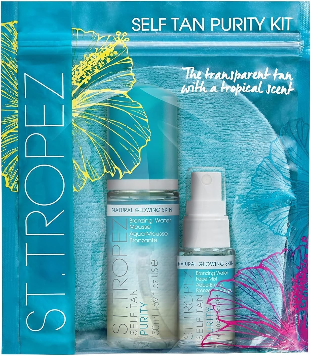 St.Tropez Self Tan Purity Starter Kit, Travel Size, Tanning Bronzing Water Mousse 50ml, Face Mist 14ml, Applicator Mitt, Vegan, Natural & Cruelty Free