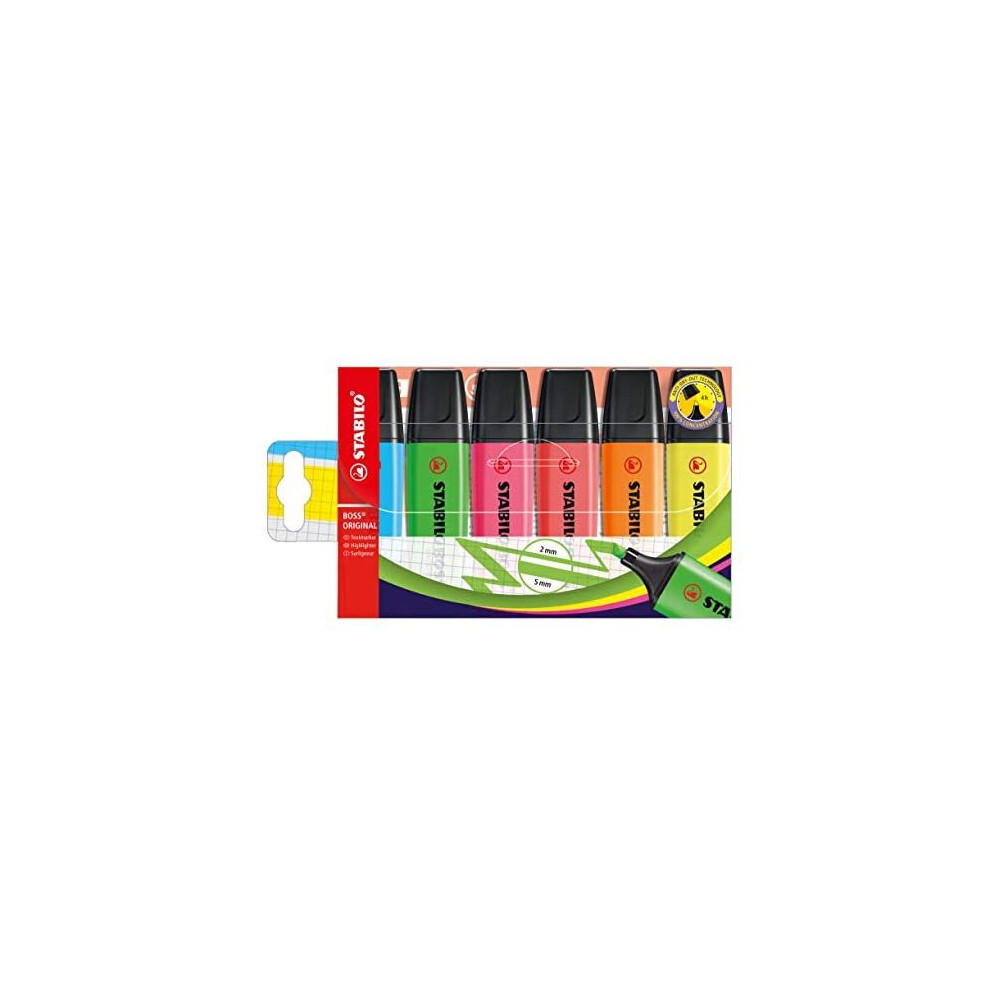 Highlighter - STABILO BOSS ORIGINAL - Round Box of 6 - Yellow, Green, Orange, Re