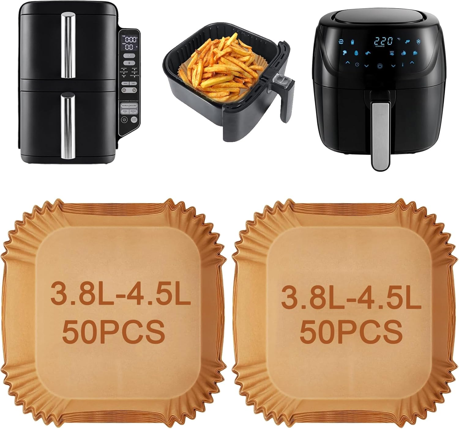 100PCS Air Fryer Liners for Ninja Double Stack 7.6L Air Fryer SL300UK, Dual Air Fryer Paper Liners Disposable, Ninja Double Stack Air Fryer