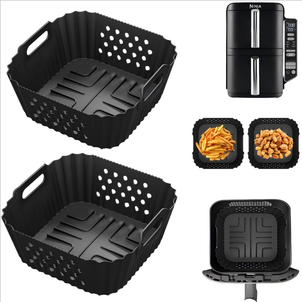 2PCS Air Fryer Silicone Liners for Ninja Double Stack Air Fryer 7.6l SL300UK / Russell Hobbs Air Fryer 4L, 4L Air Fryer Silicone Liners Square,