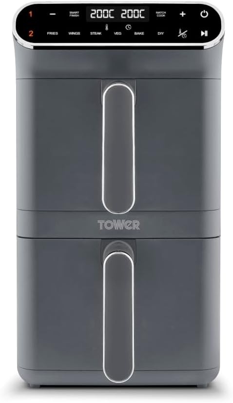 Tower T17190GRP Vortx XL Dual Stack Air Fryer with Digital Control Panel, Space