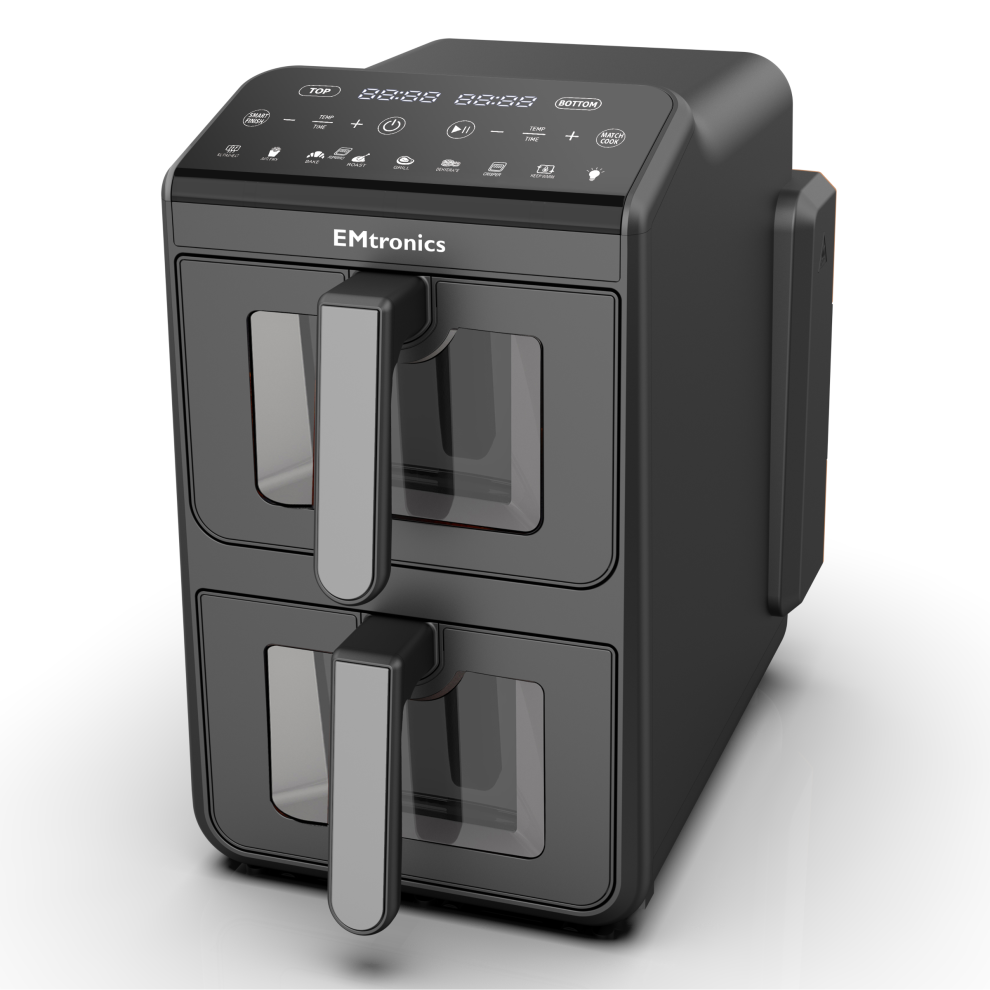 (Black with Windows) EMtronics 10L Stack Dual Air Fryer Double Basket Large Family Size