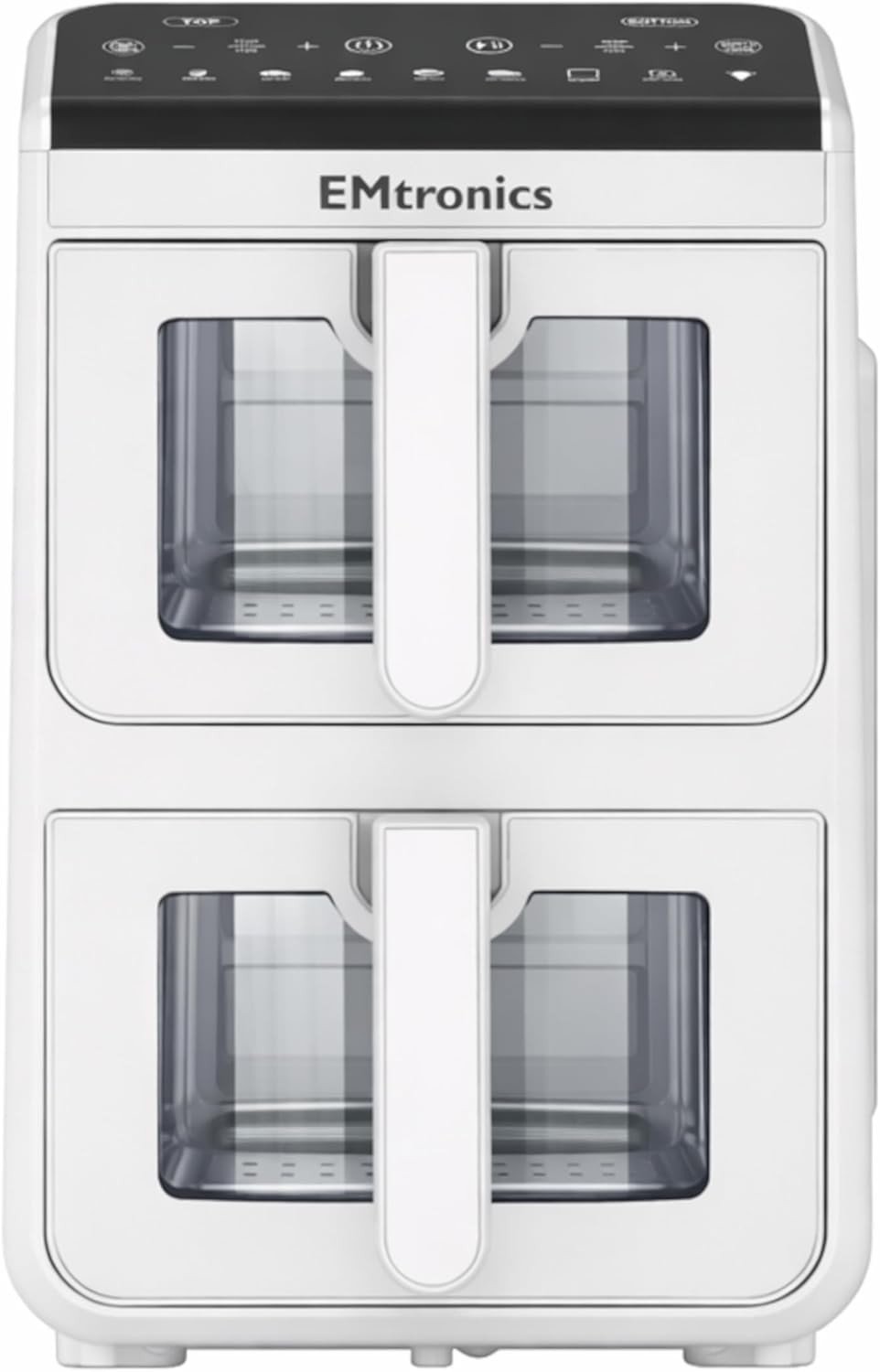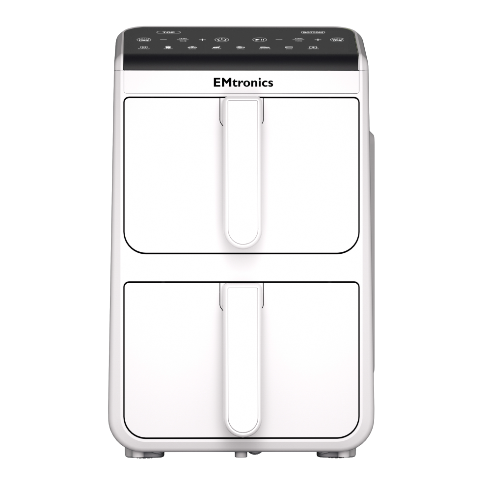 (White) EMtronics 10L Stack Dual Air Fryer Double Basket Large Family Size