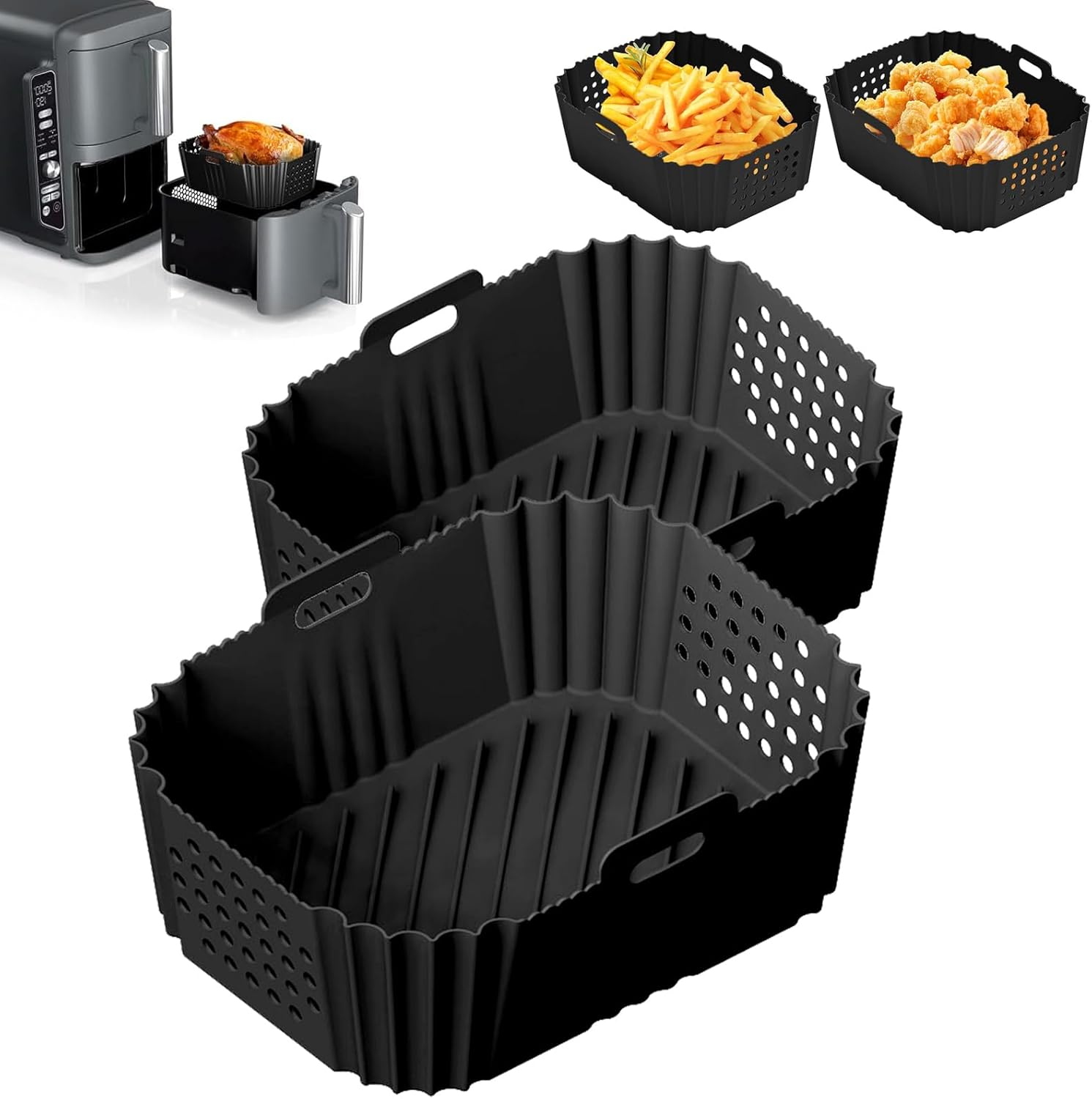 2PCS Silicone Air Fryer Liners for Ninja Double Stack XL 9.5L Air Fryer SL400UK,