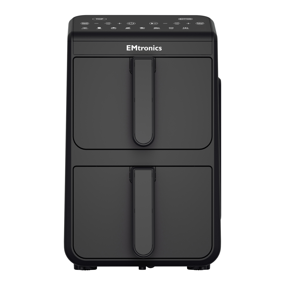 (Black) EMtronics 10L Stack Dual Air Fryer Double Basket Large Family Size