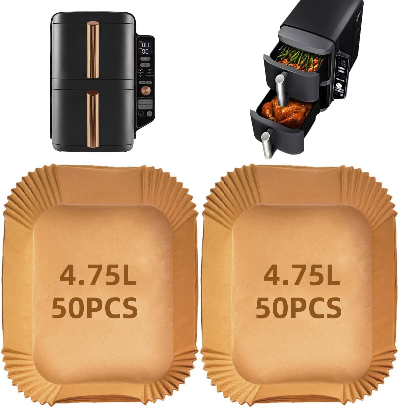 100PCS Ninja Double Stack XL 9.5L Air Fryer Liner, Dual Air Fryer Paper Liners for Ninja SL400UK, AF300UK, AF400UK, Air Fryer Liners Disposable for Ninja, Cosori, Tower, Other Dual Airfryer