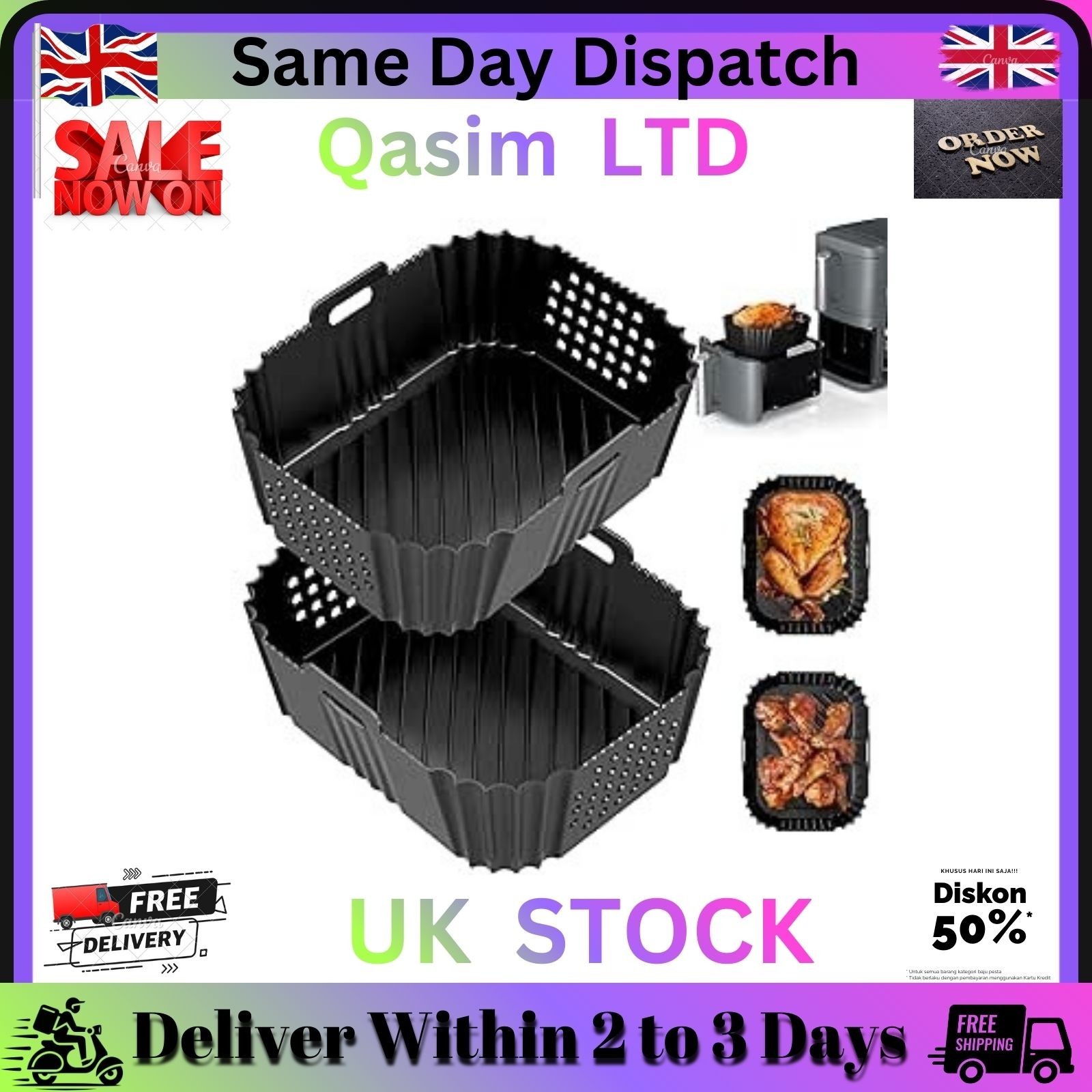 2PCS Air Fryer Silicone Liners for Ninja Double ,Stack 7.6L Air Fryer SL300UK