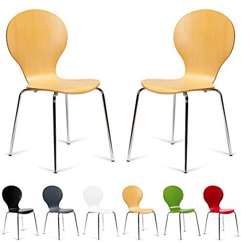 Your Price Furniture.com Set of 2 Beech Wood and Chrome Metal Kimberley Keeler Style Stackable Dining Chairs - Kitchen Cafe Bistro Style Bentwood Stacking Chairs