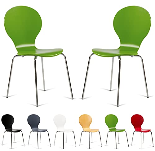 Your Price Furniture.com 2 Keeler Style Kimberley Chrome and Metal Stackable Dining Chairs Choice of Slate Grey Red Green White Black or Natural - Kitchen Cafe Bistro Style Stacking Chairs (Green)