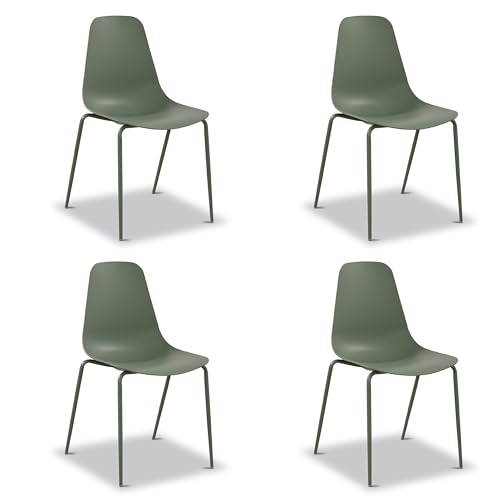 POLY & BARK Isla Stackable Dining Chairs Set of 4 – Mid Century Modern Plastic Dining Chair with Metal Legs – Kitchen & Dining Room Chairs – Dining Table Chairs Set – Indoor/Outdoor – Pistachio Green