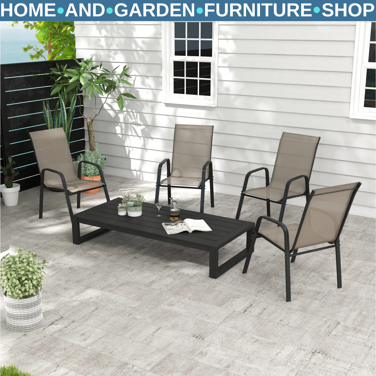 4 Piece Stackable Garden Dining Chairs Set Outdoor Patio Seating for Table Use