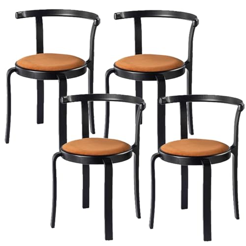 GUAWJRZDP Solid Wood Dining Chairs with Upholstered, Stackable Kitchen Chairs, Dining Room Chair Accent Chair Vanity Seat for Dining Room, Study Room, Living Room(Black+orange,4PCS)