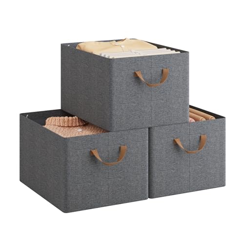 WOLTU ABB10gbn-3-UK Foldable Storage Boxes Set of 3, Fabric Storage Cubes with Handles, Stacking Boxes for Clothes and Toys, Grey, 42 x 32 x 26 cm