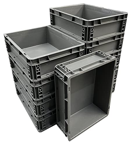 6 x 20 Litres Robusto Industrial Plastic Stacking Euro Storage Containers Boxes Crates GREY