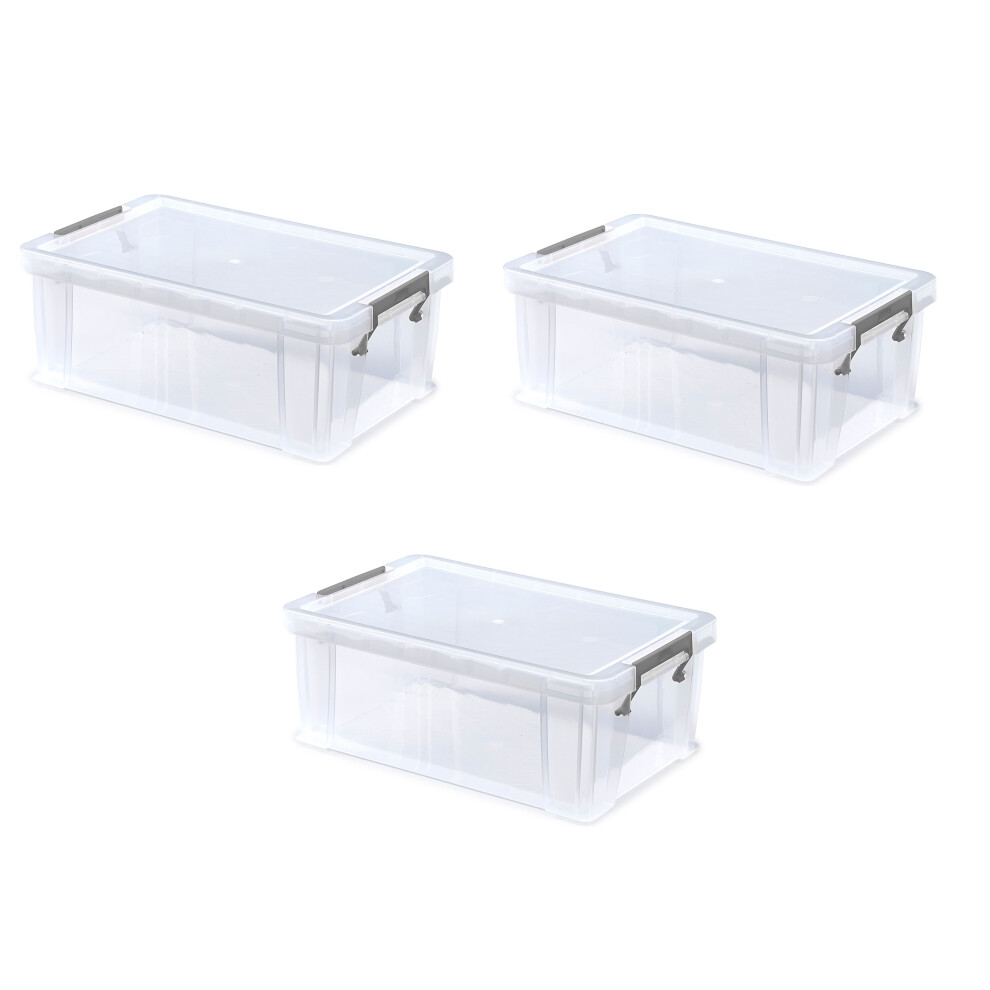 3 10L Clear Stacking Storage Boxes Clip Lock Lid Allstore A4 Storage 40x26x15cm