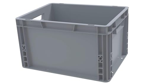 AUTORCE Euro Stacking Industrial Plastic Storage Boxes - 20Lt, 46Lt, 66 Lt Blue or Grey Heavy Duty Container Crate Box (20 Litres - 40x30x23 cm - GREY)