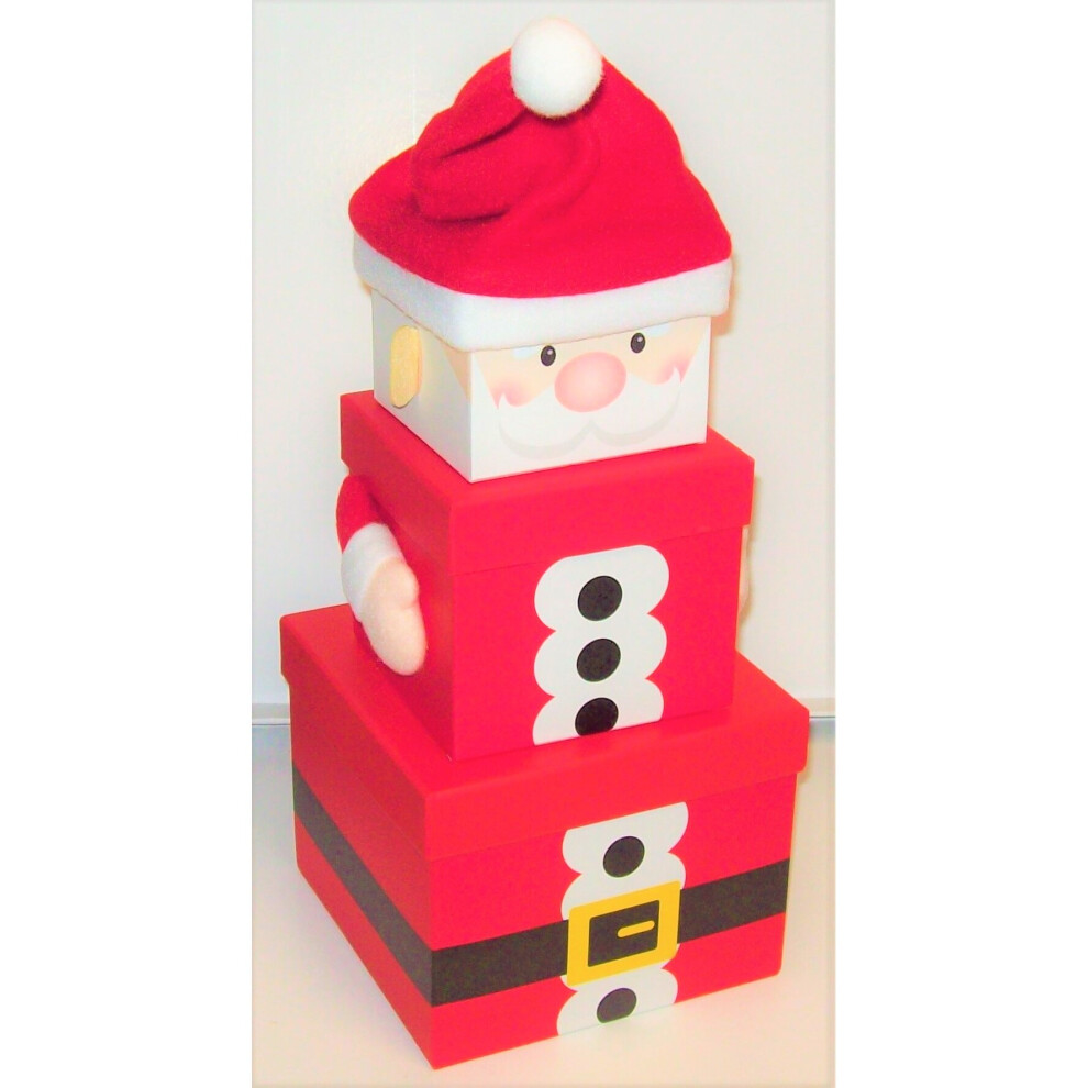 Plush Santa Christmas Eve Gift Box Set Of 3 Stacking Nesting Storage Treat Boxes