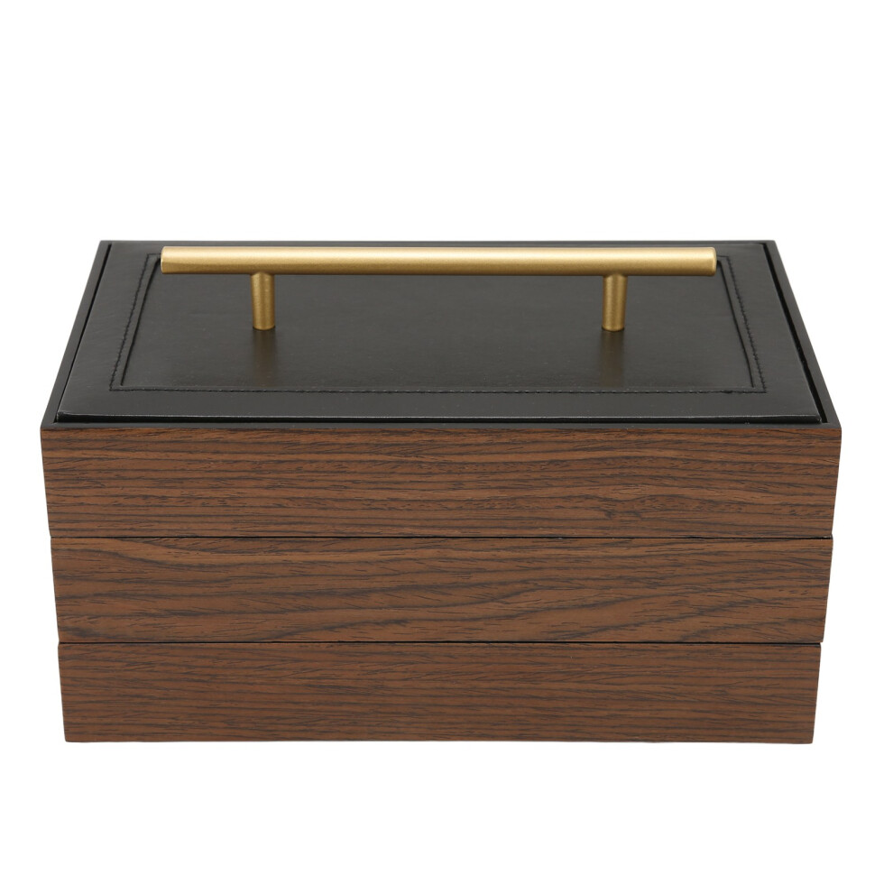Elegant Jewelry Box With Gold Tone Metal Hinges Stacking Storage Boxes Decorative Storage Space High Quality Faux Leather Modern Design Three Layer Je
