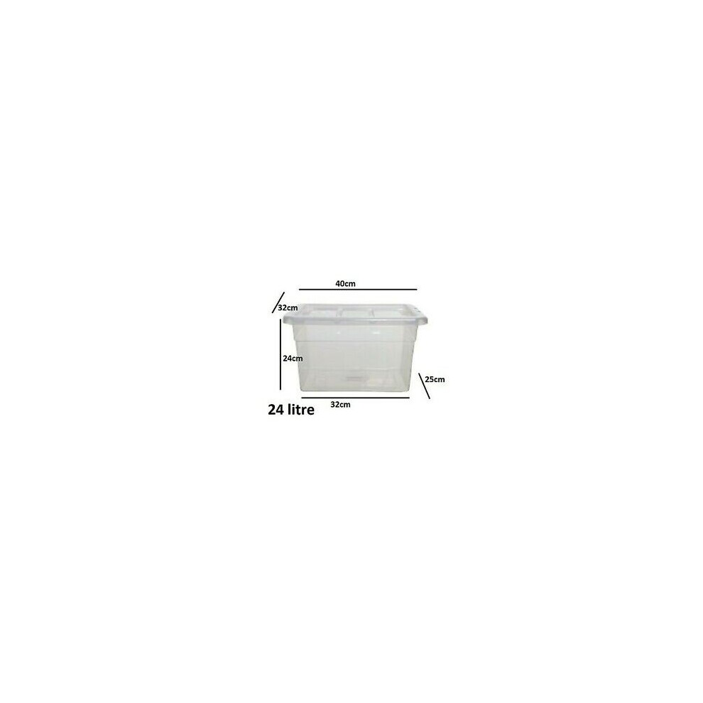 (24 (LITRE) 40 CM, 10 BOXES) Clear Plastic Space Saving Master Storage Boxes With Lid Stackable Stacking Unit
