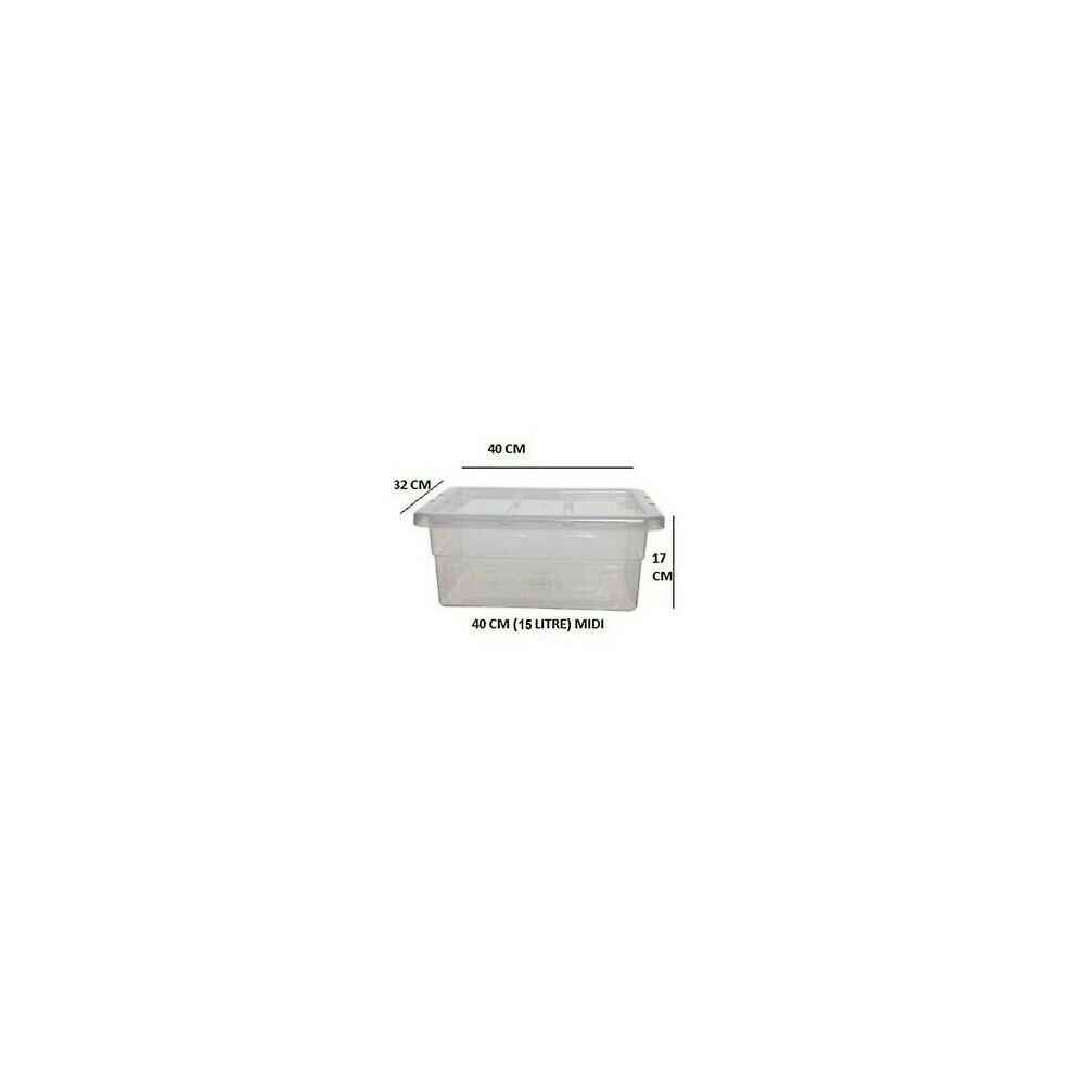 (15 (LITRE) 40 CM, 5 BOXES) Clear Plastic Space Saving Master Storage Boxes With Lid Stackable Stacking Unit