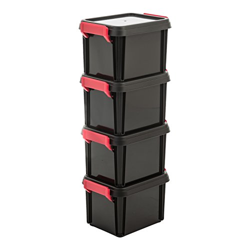 Iris Ohyama Stacking Storage Boxes with Lids – Set of 4 Multi Boxes – MBX-6/Plastic/Clear, plastic, Noir/Rouge/Transparent, 2 L