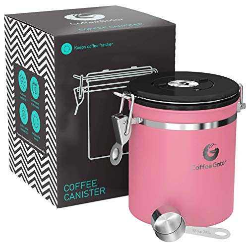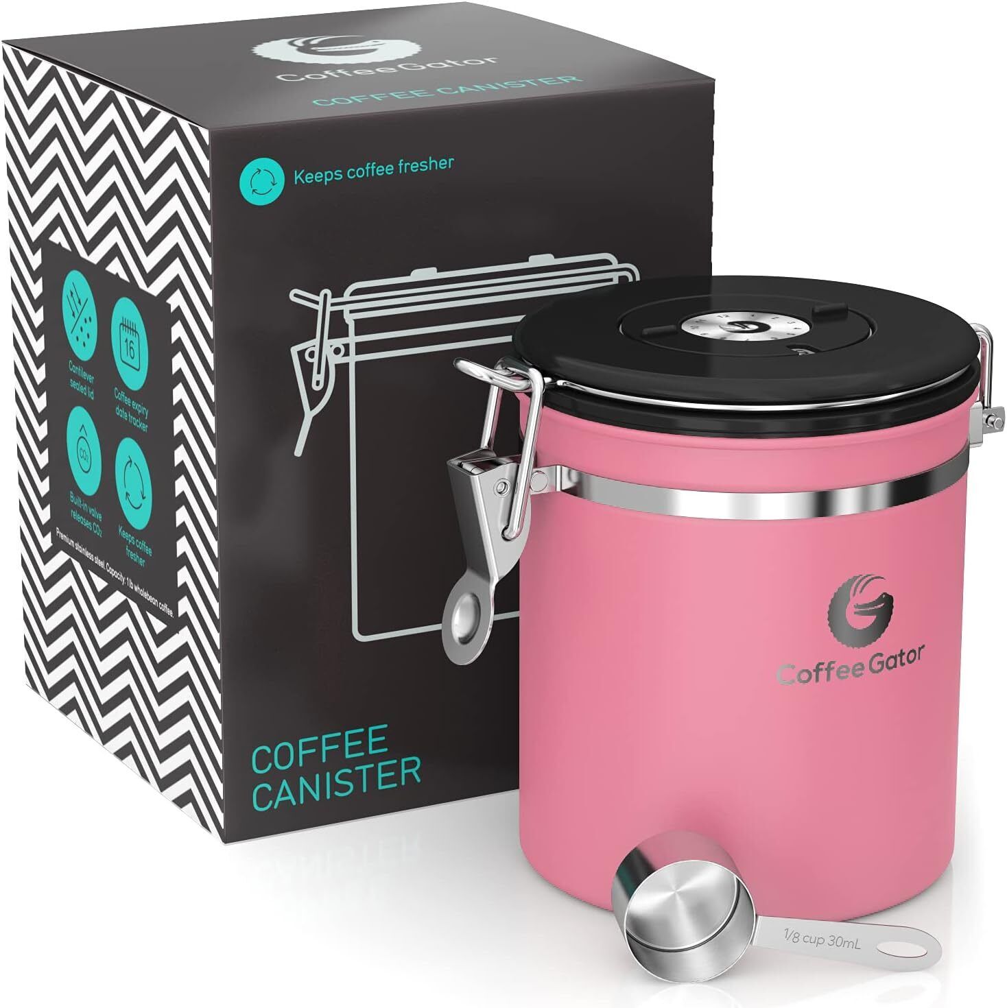 Coffee Gator Coffee Canister Airtight 1300 mL, Stainless Steel Kitchen Food Storage Container with Date Tracker, CO2 Valve, Scoop for Grounds Coffee, Beans,Tea, Sugar, Flour, Snacks