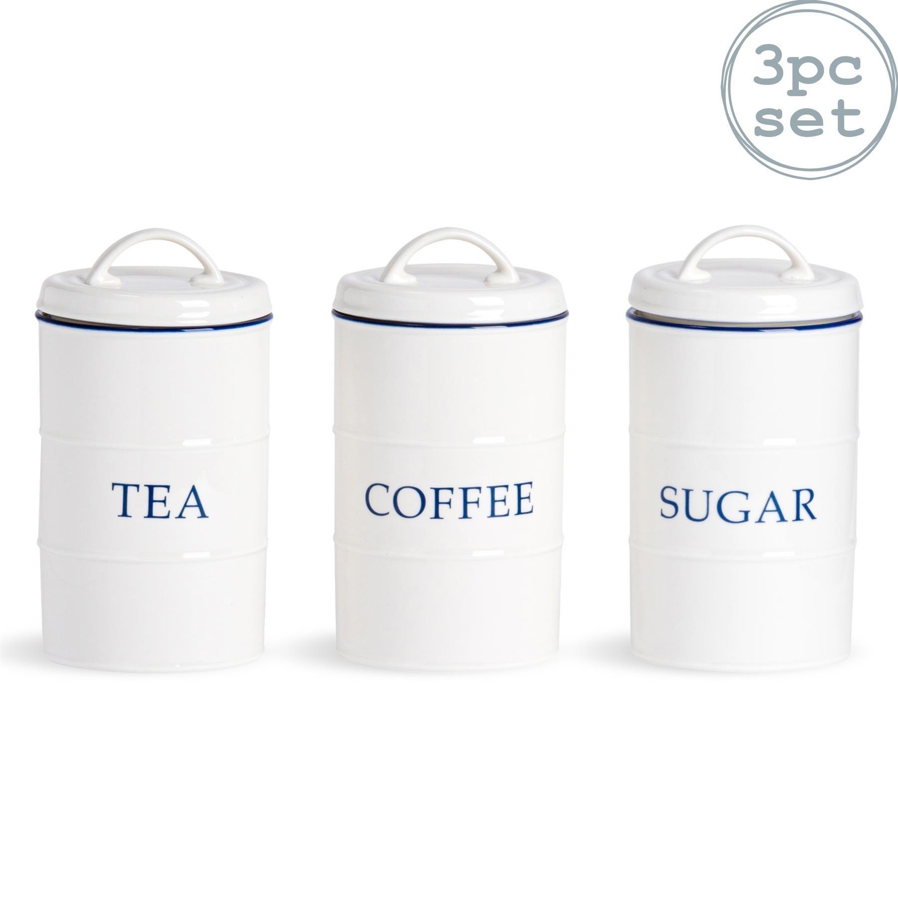 3 Piece White Farmhouse Tea Coffee Sugar Set 11cm