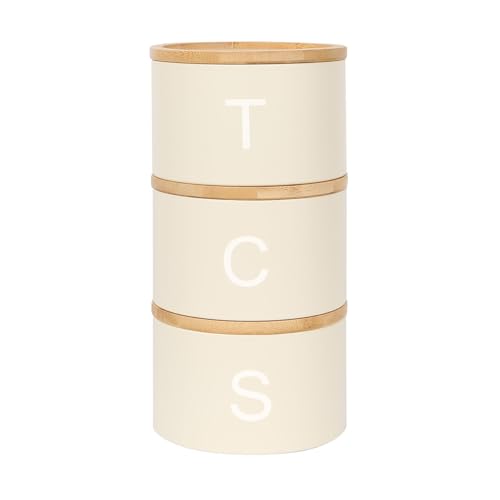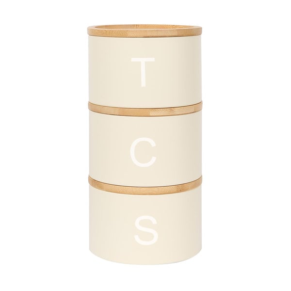 3pc Stacking Tea Coffee Sugar Canister Set with Bamboo Lids - Cream