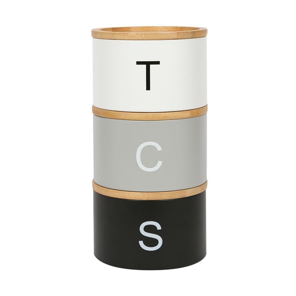 3pc Stacking Tea Coffee Sugar Canister Set with Bamboo Lids - Monochrome