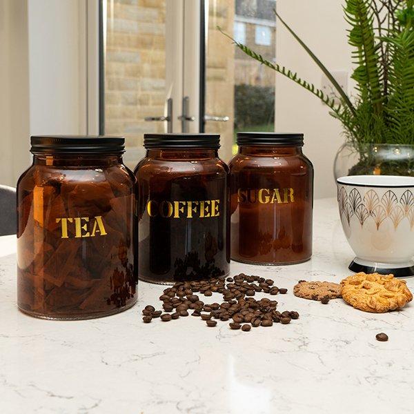Sass & Belle Set of 3 Tea, Coffee, Sugar Stacking Jars Kitchen Organisation
