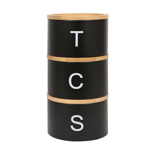 3pc Stacking Tea Coffee Sugar Canister Set with Bamboo Lids - Black