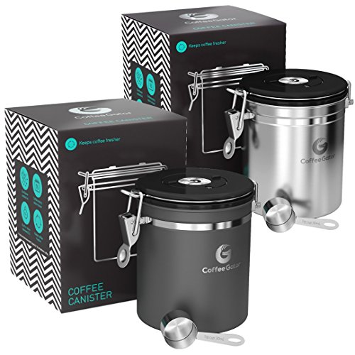 Coffee Gator Coffee Canister Airtight 1300 mL 2 Pack, Stainless Steel Kitchen Food Storage Container with Date Tracker, CO2 Valve, Scoop for Grounds Coffee, Beans,Tea, Sugar, Flour, Snacks