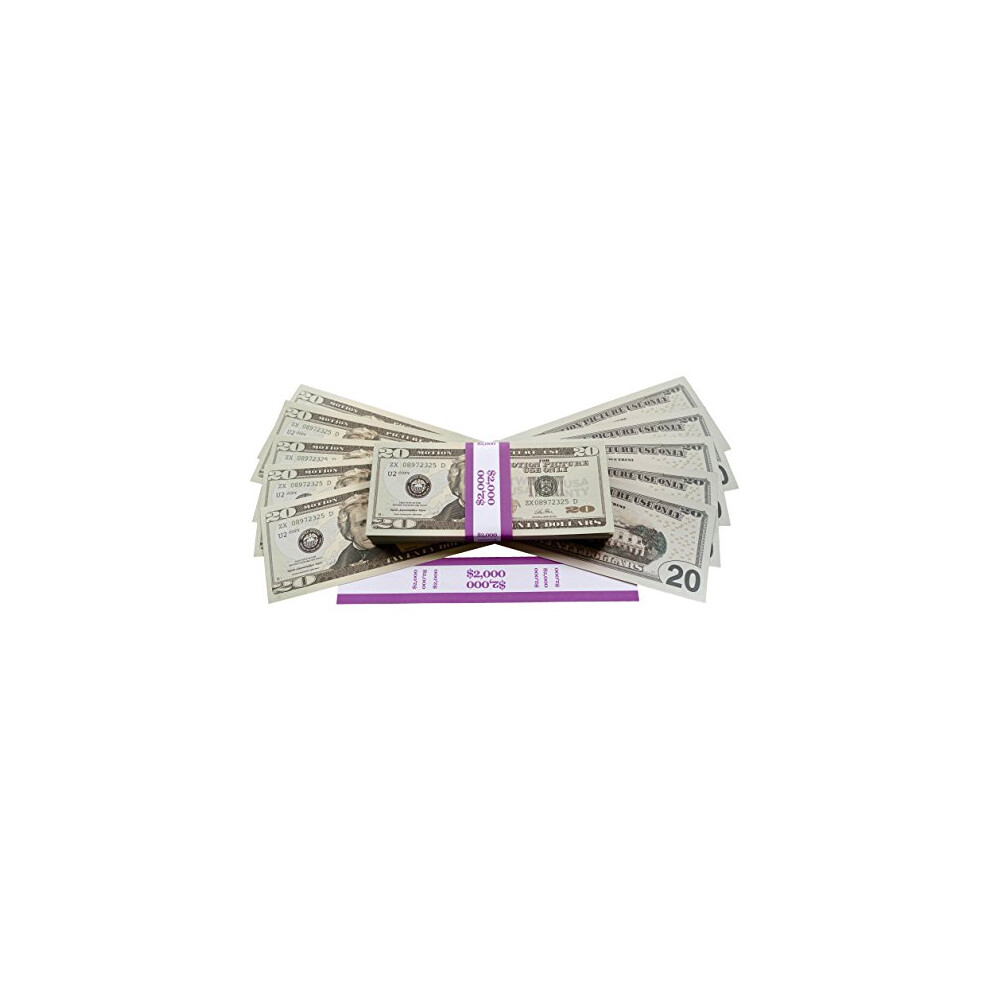 PROP MONEY DOLLARS - $2,000 FULL PRINT 20 DOLLAR BILLS, in Authentic Bank Strap. For Movies, Films, Money Guns Cash Cannon Play Fake Money, Party's,