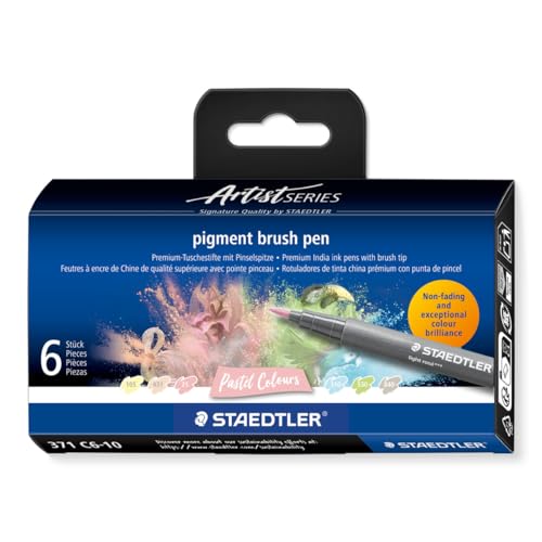 STAEDTLER 371 C6-10 Pigment Arts Brush Pen - Assorted Pastel Colours (Pack of 6)