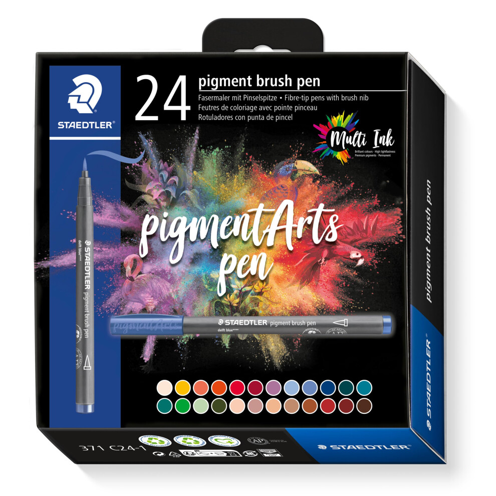 STAEDTLER 371 C24-1 Pigment Arts Brush Pen - Assorted Colours (Pack of 24)