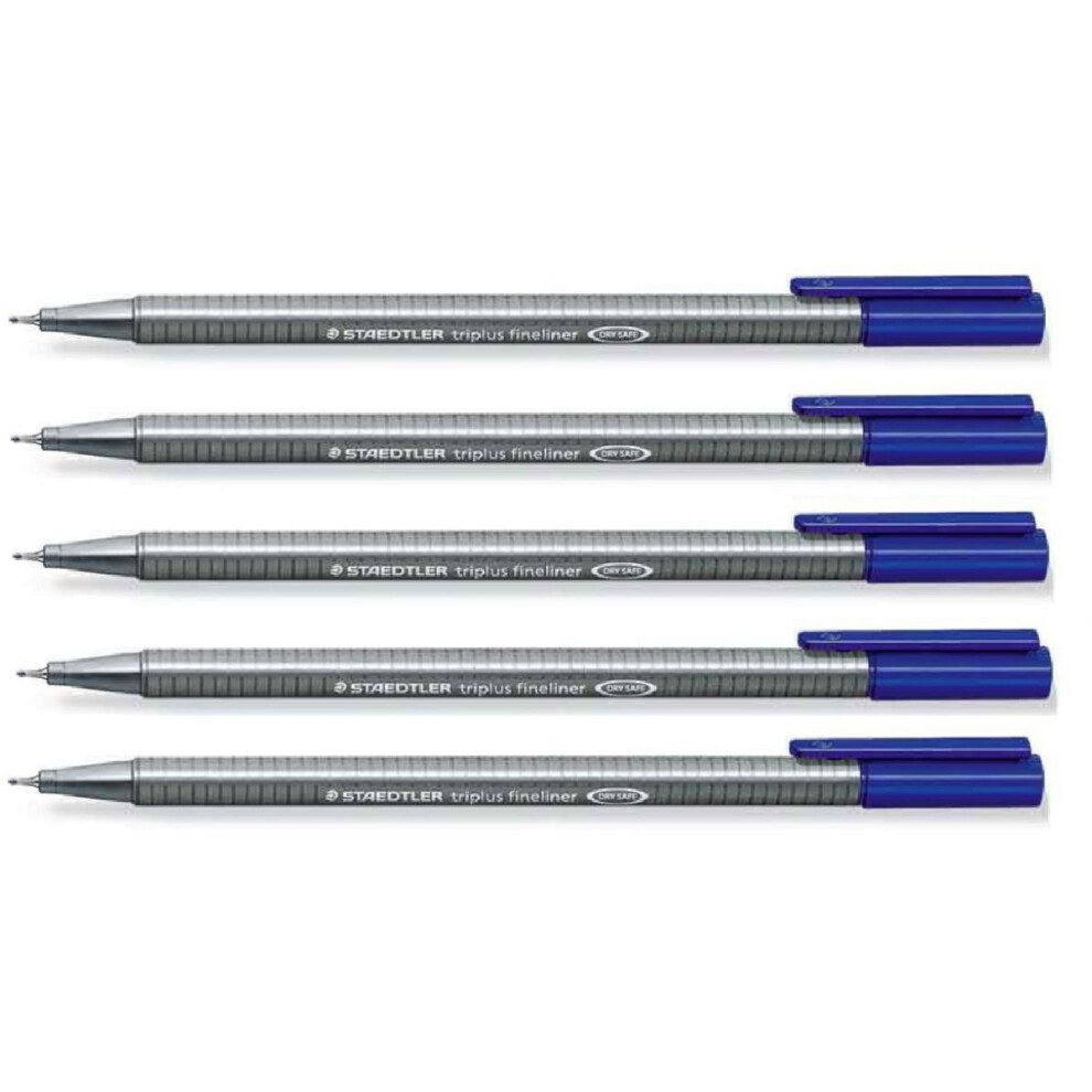 STAEDTLER 334 Triplus Fineliner Superfine Point Pens - 0.3mm - Blue Ink (5)