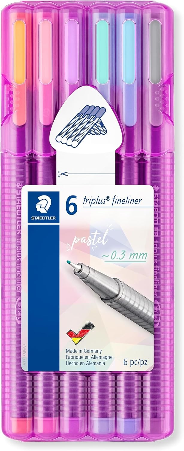 STAEDTLER 334 SB6 PA Triplus Fineliner Superfine Point Pens, 0.3 mm - Assorted Pastel Colours (Pack of 6)