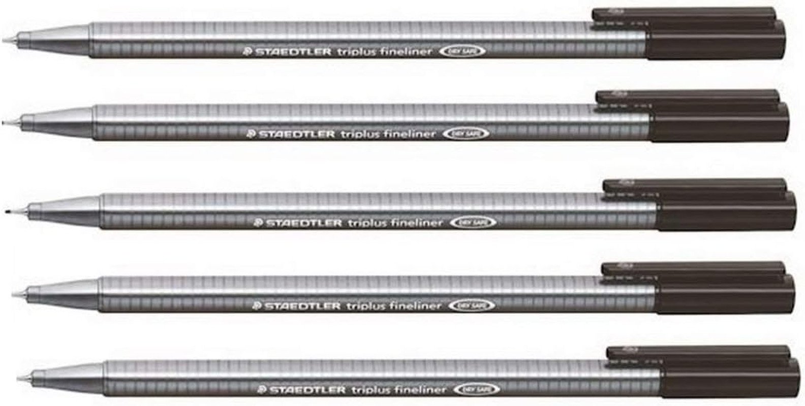 STAEDTLER 334 Triplus Fineliner Superfine Point Pens - 0.3Mm - Black Ink (5)