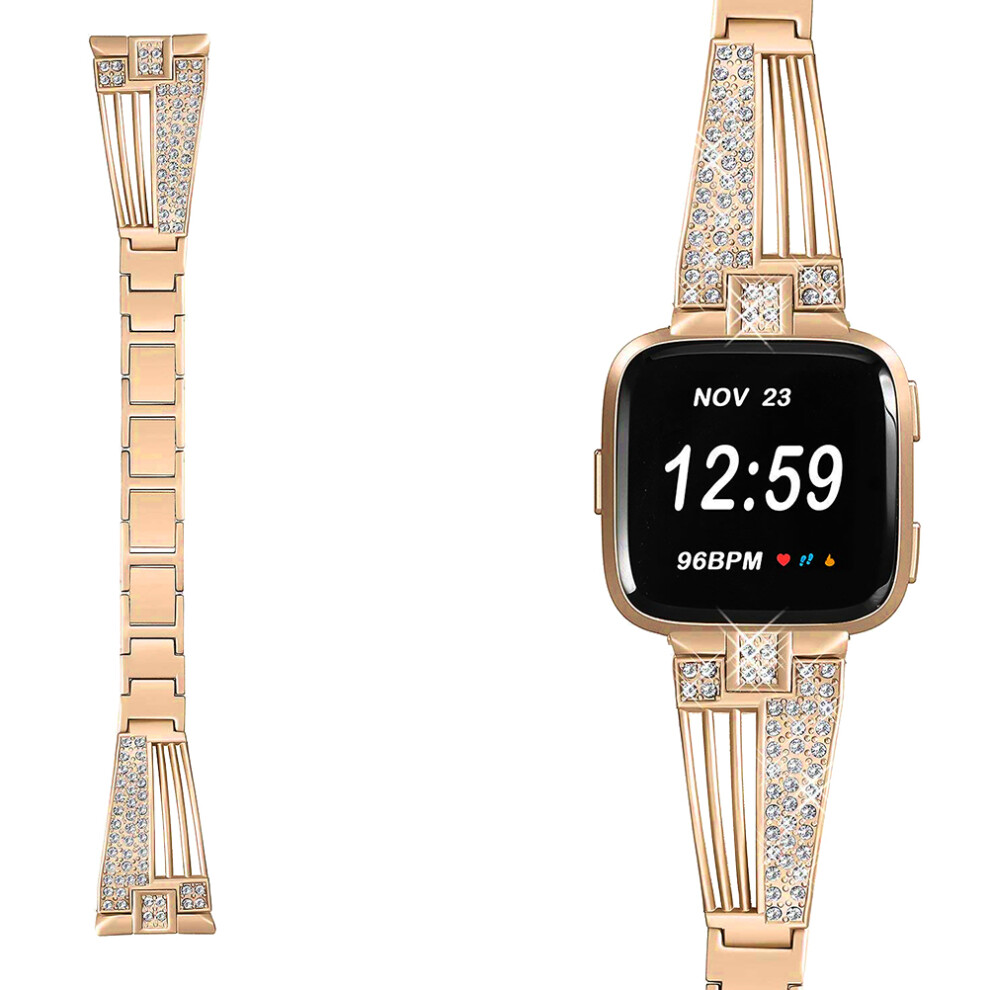 2Pcs Rose Gold Stainless Steel Adjustable Smartwatch Band Replacement